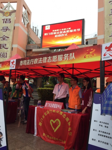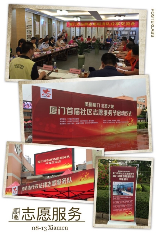 8月13日,在市委文明办召开的品牌志愿服务队交流会及首届社区志愿服务节启动仪式上,市司法行政法律志愿服务队作为品牌志愿服务队代表,参与志愿服务经验分享并现场开展法律志愿服务。市司法行政法律志愿服务队以我局争创“全国文明单位”活动为契机,不断整合优势,拓展领域,打造品牌,努力在全市实现法律志愿服务全覆盖,推动志愿服务专业化、品牌化、常态化,以实际行动为创建“志愿之城”、缔造美丽厦门增光添彩。