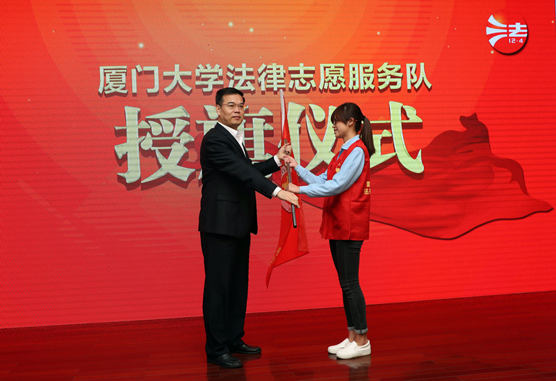 △图为林锐副市长为厦门大学法律志愿服务队授旗(记者 陈理杰 摄)