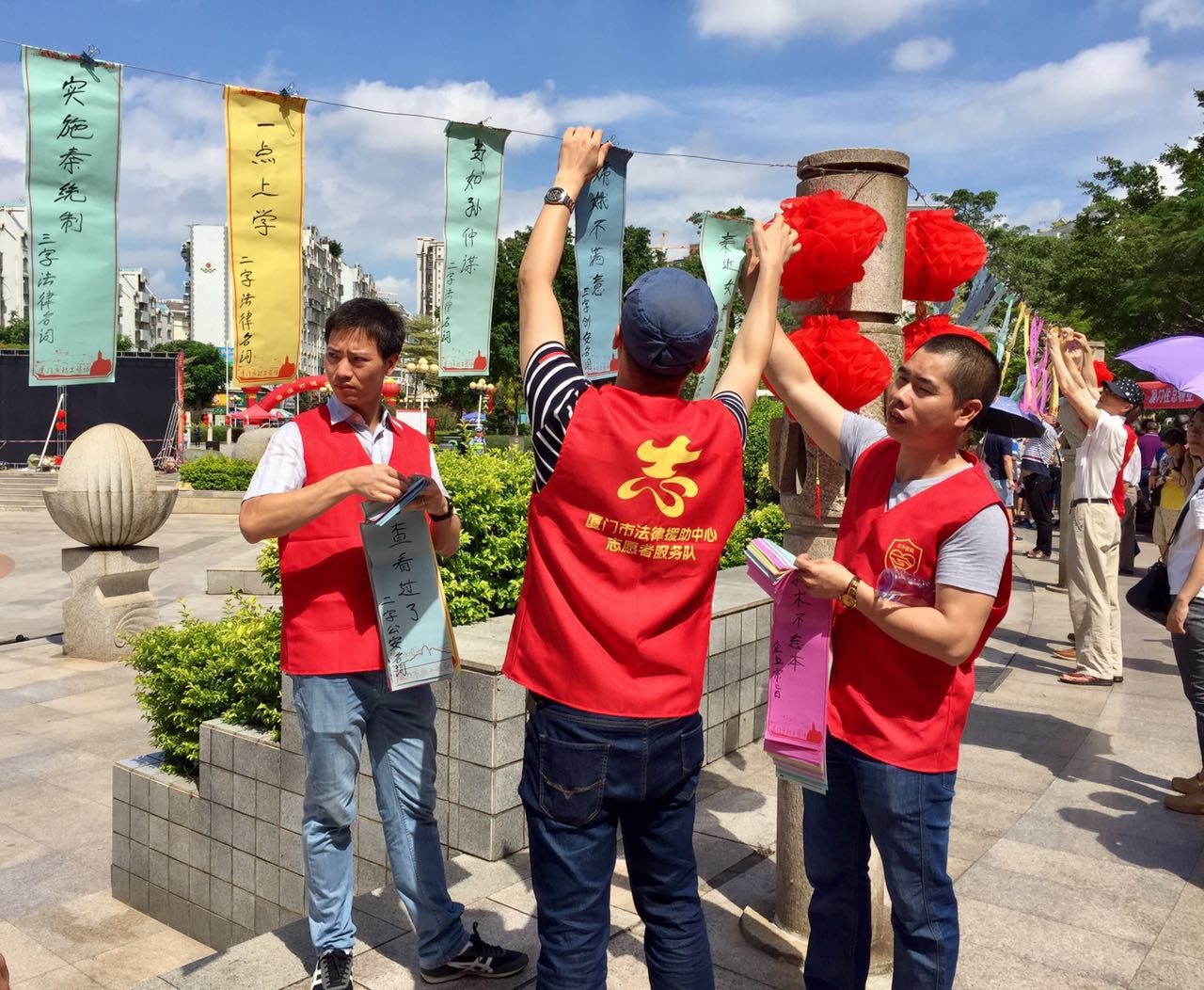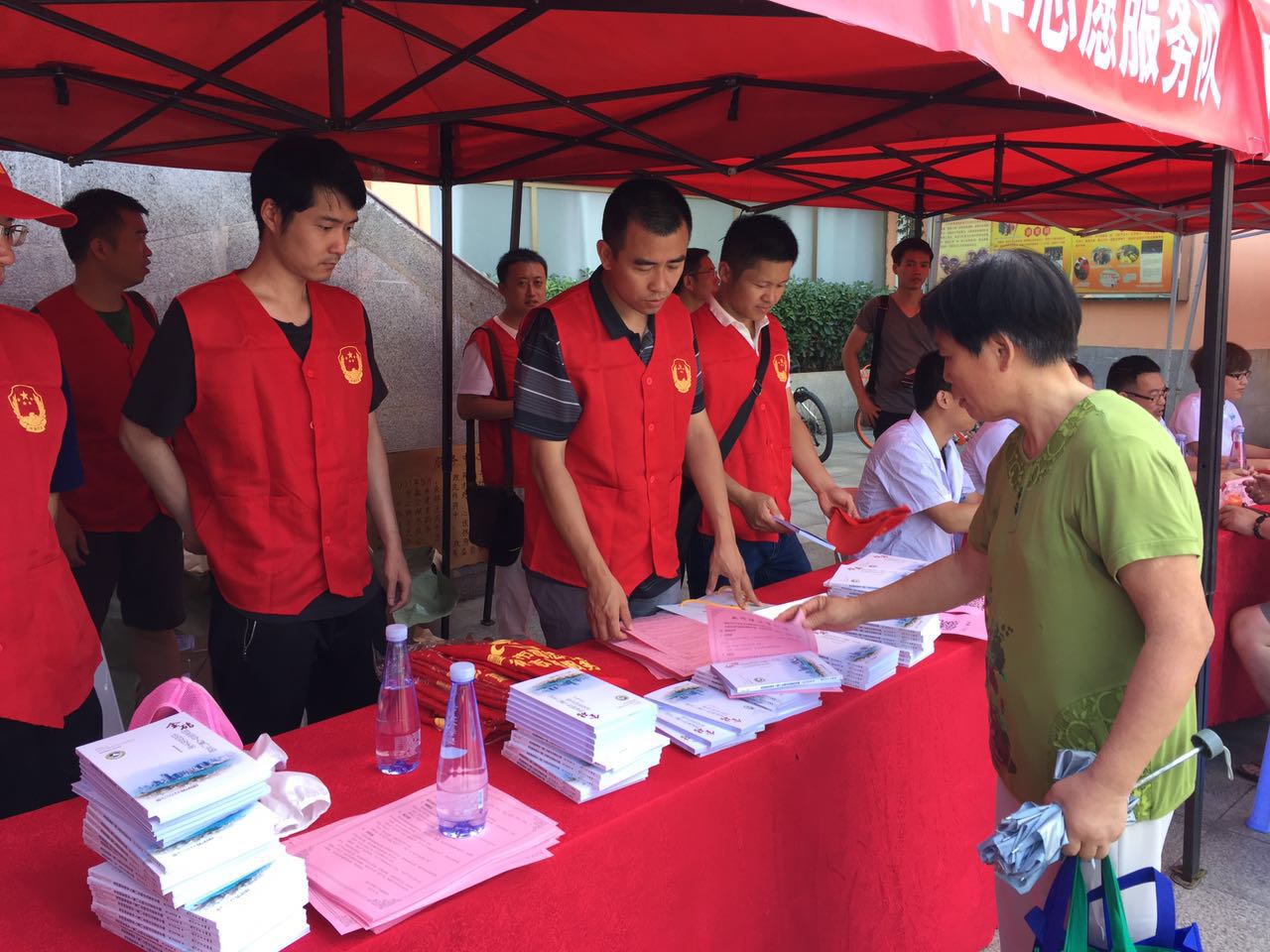 活动现场,市司法行政法律志愿服务队的志愿者们就群众关心的法律问题进行答疑解惑,发放法治宣传资料,维护现场秩序,并受到了群众欢迎。