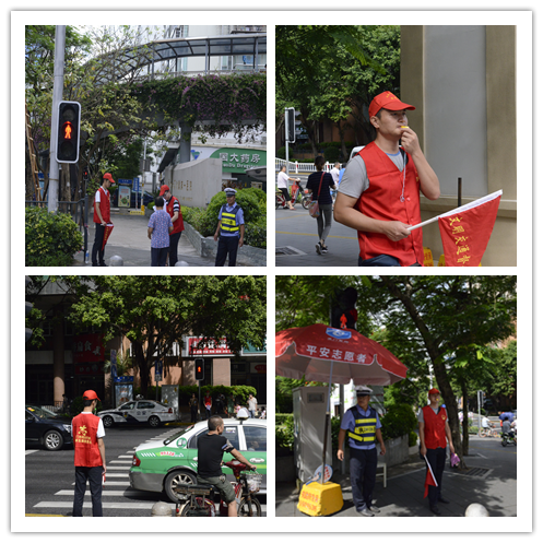 在第一医院门口斑马线周边,志愿者协助开展文明交通疏导,倡导文明出行,对违章停车、横穿马路等不文明行为进行劝导。