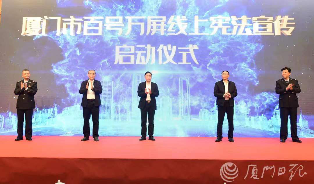 12月2日,厦门市2021年“宪法宣传周”暨百号万屏线上宪法宣传活动启动仪式在市税务局隆重举行。